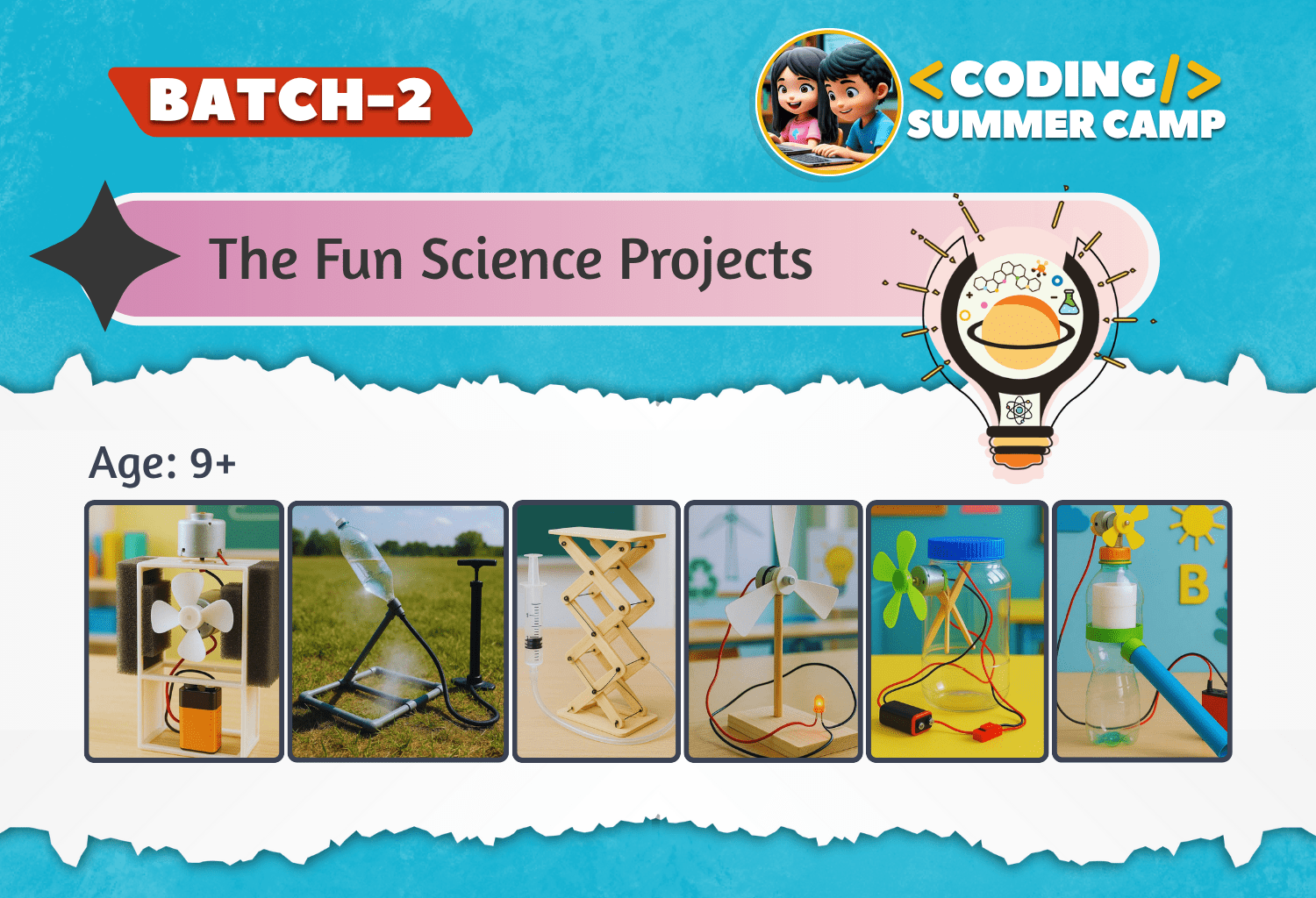 This 4-week summer camp engages students through exciting, hands-on STEM projects. Participants will build devices like vacuum cleaners, air coolers, and hydraulic lifts while learning the scientific principles behind each creation. Through teamwork and creative problem-solving, students will explore concepts such as pressure, energy conversion, electromagnetism, and sustainability. The camp encourages innovation using everyday materials, deepens understanding of real-world science applications, and promotes critical thinking skills essential for future engineers and scientists.